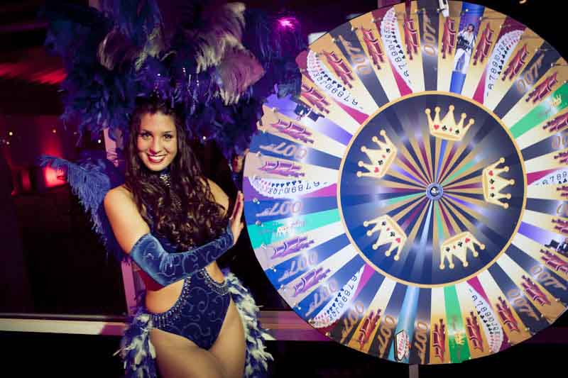 Also known as the Big Wheel or Money Wheel, Wheel of Fortune is an unequal game of chance. The easiest game to learn, its large vertical spinning wheel is divided into equal segments separated by pins, and each segment is associated with a category and odds shown on a table. Guaranteed to keep your guests in a happy spin.